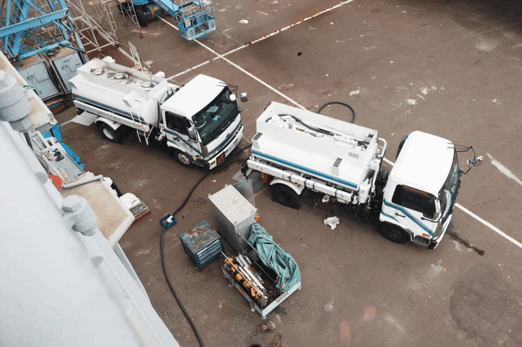 今日は、船の燃料タンクに残っていた燃料を抜き取る作業をしました。