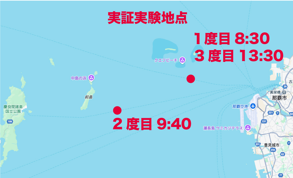 その後、9時20分頃、渡嘉敷島付近へ移動して二度目の集音、さらに13時30分頃に三度目の集音を実施しました。