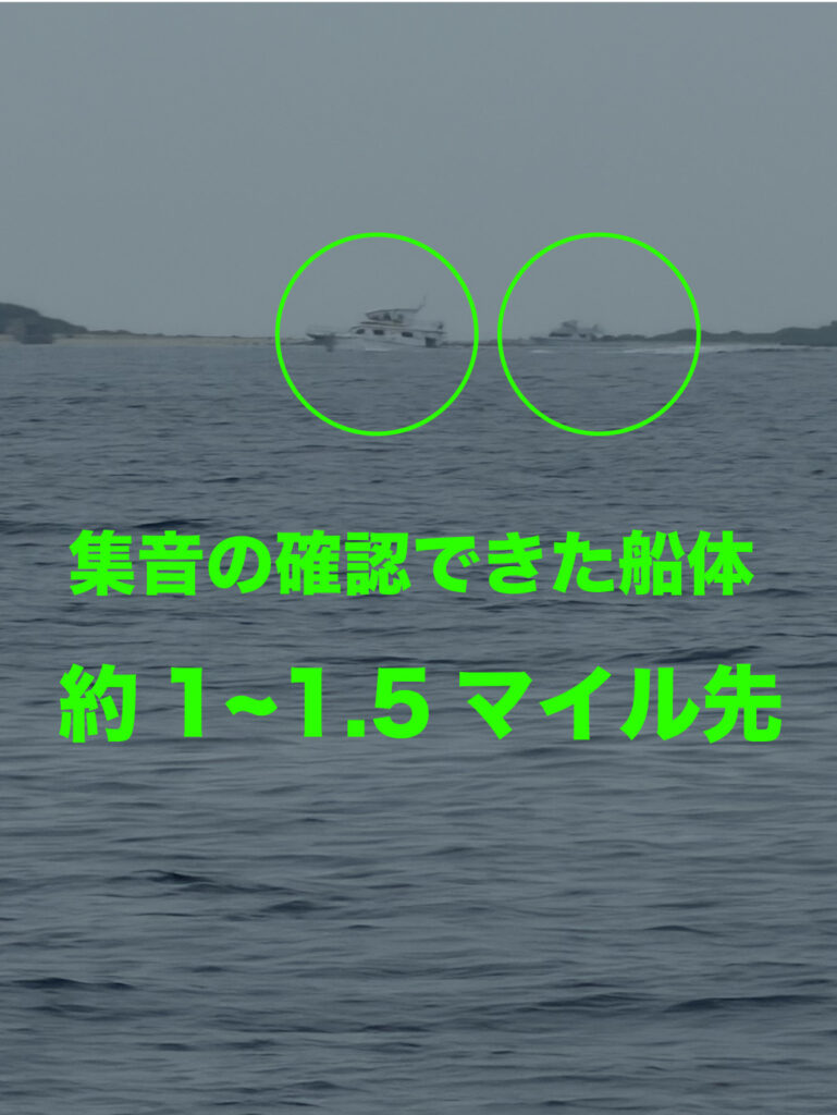 予定している船のダイヤに合わせ、午前8時に那覇市沿岸漁港を出港し、8時30分頃に神山島付近で収音を開始しました。