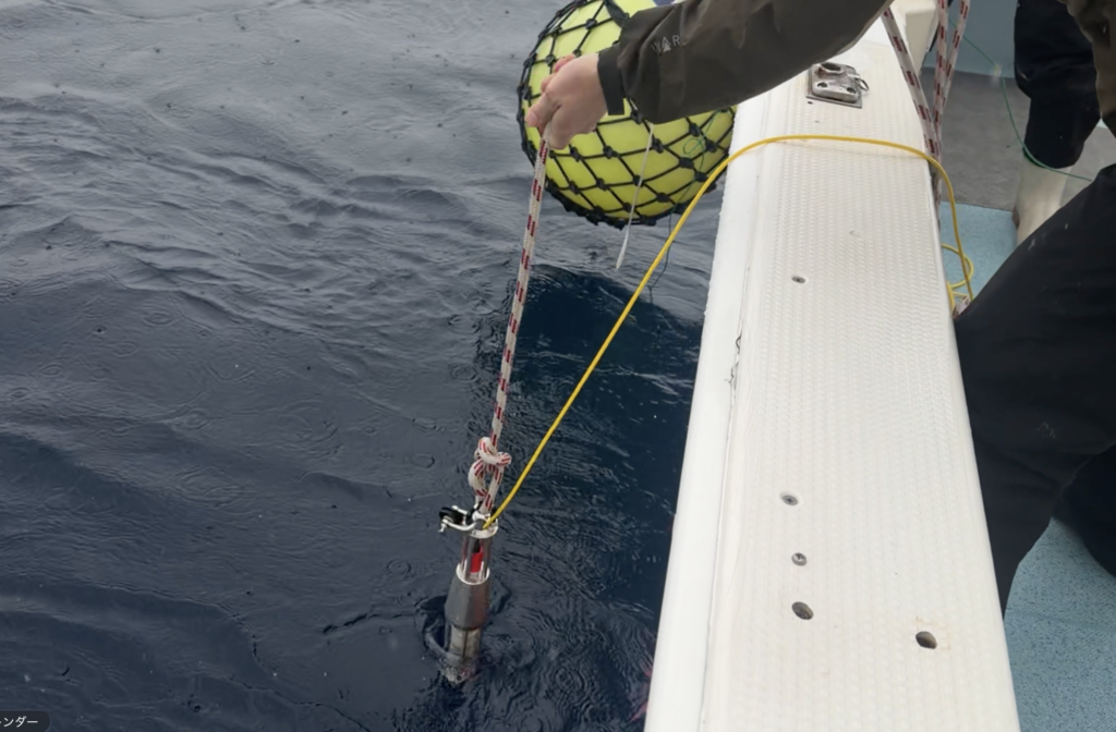 12月20日、高感度ハイドロフォン(水中マイク)を海中に降ろし、クジラの発音を集音する第一回集音実験を行いました。